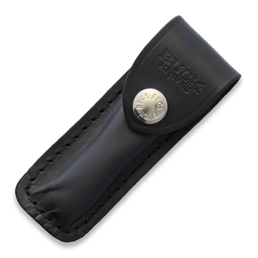 Fits most 102 mm folding knives. Made to fit BU501 Squire Lockback. Black leather sheath.