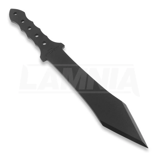It’s solid, one-piece tempered steel blade can easily be sharpened and paracord wrapped to create a very functional knife, but it’s wide “Roman Point” and superb balance make it an excellent thrower even at extended distances.